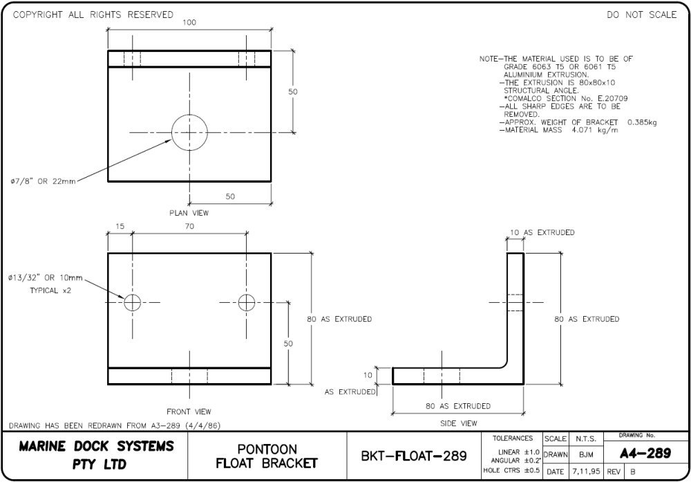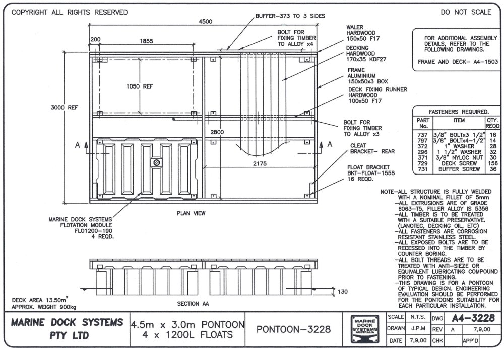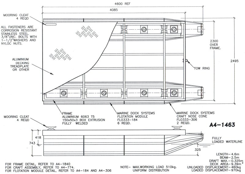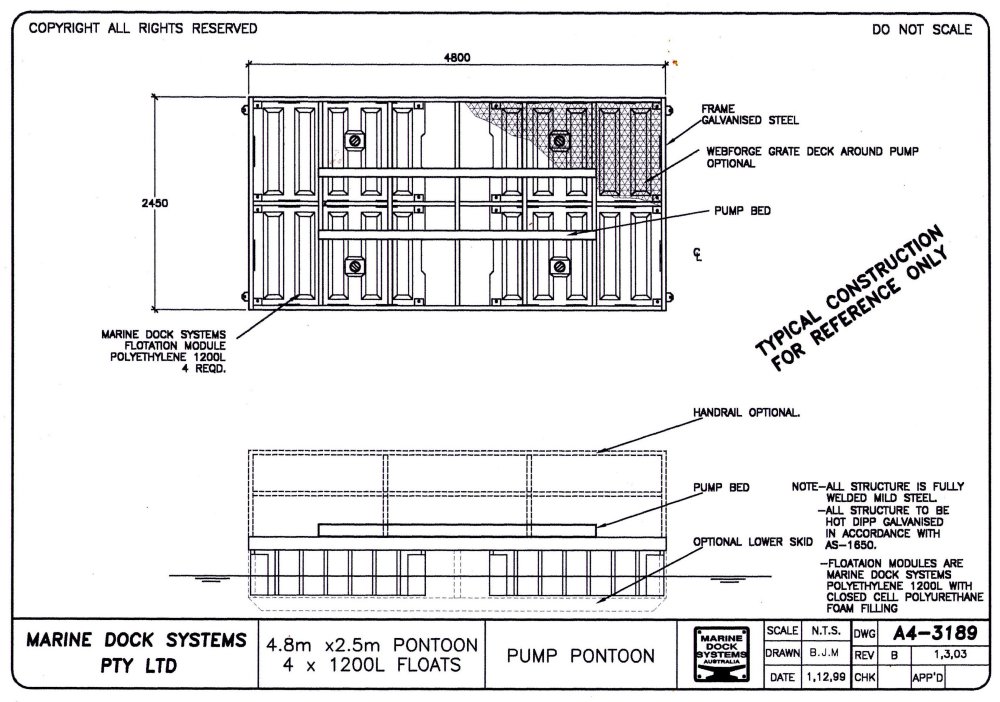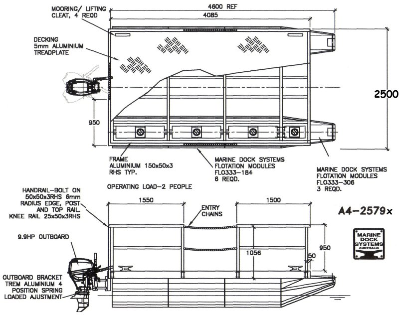 Drawing a4-0330 Pontoon 3.7 mtr x 2.46 (4 x 650 Litre Floats)