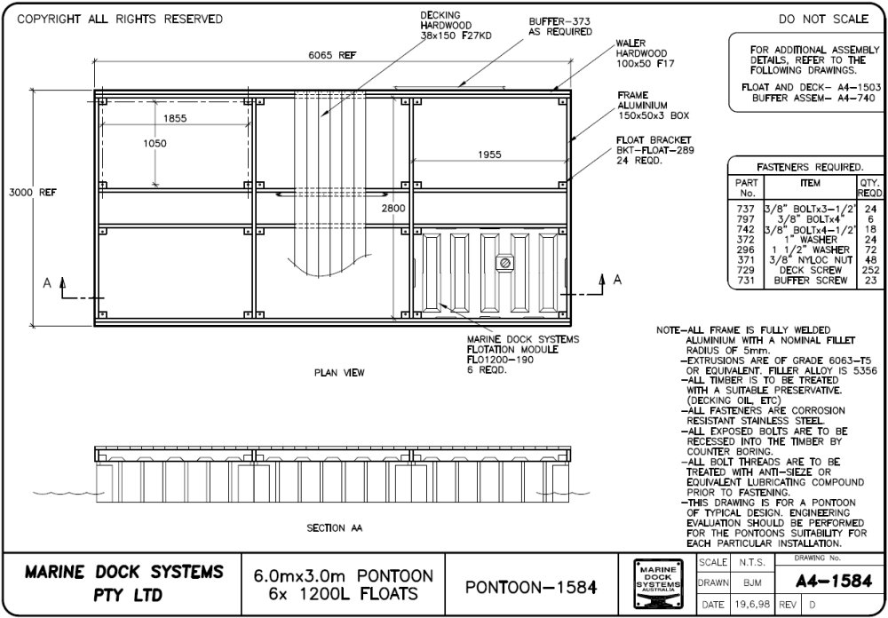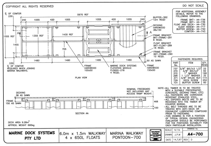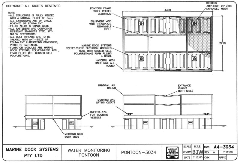 Drawing a4-0700 Pontoon 6 mtr x 1.55 (4 x 650 Litre Floats)