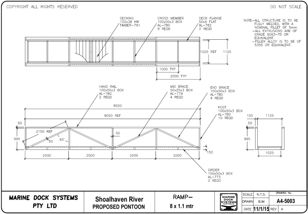 a4-1916 - Pontoon 8.9m x 2.05m alloy frame timber deck - services