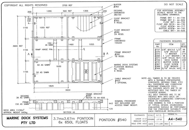 Drawing a4-0540 Pontoon 3.7 mtr x 3.67 (4 x 650 Litre Floats)