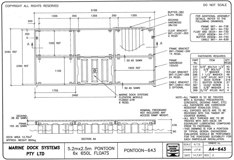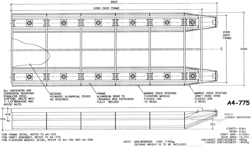 Drawing a4-0643 Pontoon 5.2 mtr x 2.5 (6 x 650 Litre Floats)