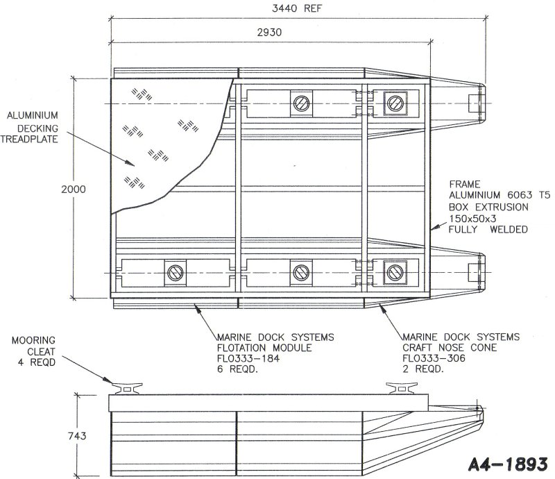 a4-1914 - Pontoon 6m x 2.05m alloy frame timber deck - services