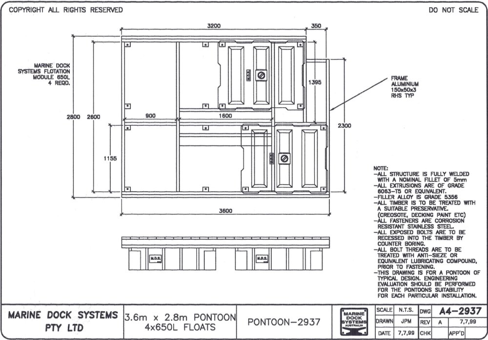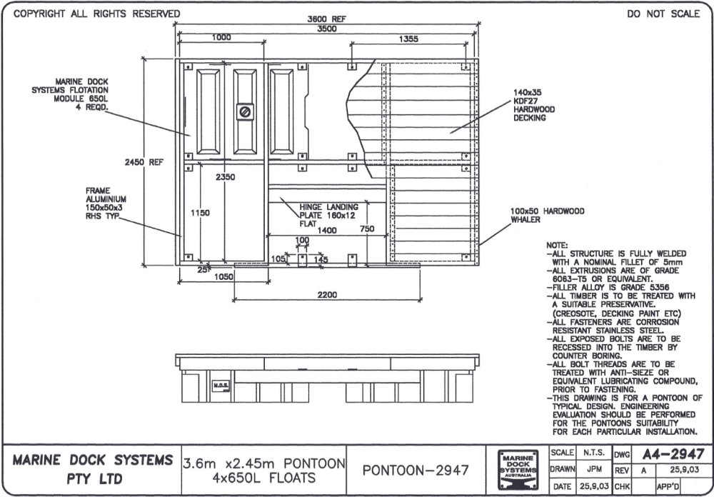 MARINE DOCK SYSTEMS PTY. LTD. CANNOT GUARANTEE THE PERFORMANCE OF THIS MODULE UNLESS THE COMPANY PROVIDES WRITTEN ENGINEERING CERTIFICATION FOR ITS INSTALLATION AND USE AT A SPECIFIC LOCATION.