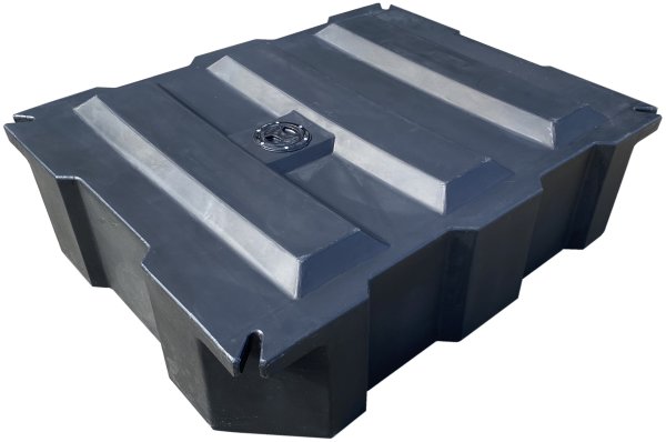 650 LITRE FLOTATION MODULE This float has been specifically designed for use under residential docks. The basic shape has been patterned after the successful 1200 litre and 900 litre commercial marina floats. A residential dock 2.4m x 3.6m uses 4 of these 650 litre floats. Floats can be filled with water or concrete to add ballast to increase stability. Ballast can also be used to raise and lower the float for different freeboard requirements. Floats can also be foam filled for extra security if required. Max load 300kg, 450kg when foam filled
