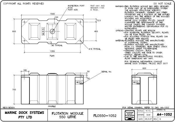 6 x 550 litre floats Dwg # 7054-01 |