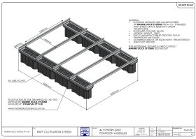 Marine Dock Systems designs and manufactures oyster cultivation pontoons. Made from UV stabilised polyethylene flotation modules and marine grade aluminium framing. The plastic pontoons are food grade material and will not harm marine life or effect the oysters. Aluminium framing is heavy duty marine grade to withstand harsh conditions and corrosion. We currently have different designs one with shipping in mind, a modular system so that the pontoons can be shipped on pallets and or loaded into containers. Also a design with fully welded pontoons in larger sections. |