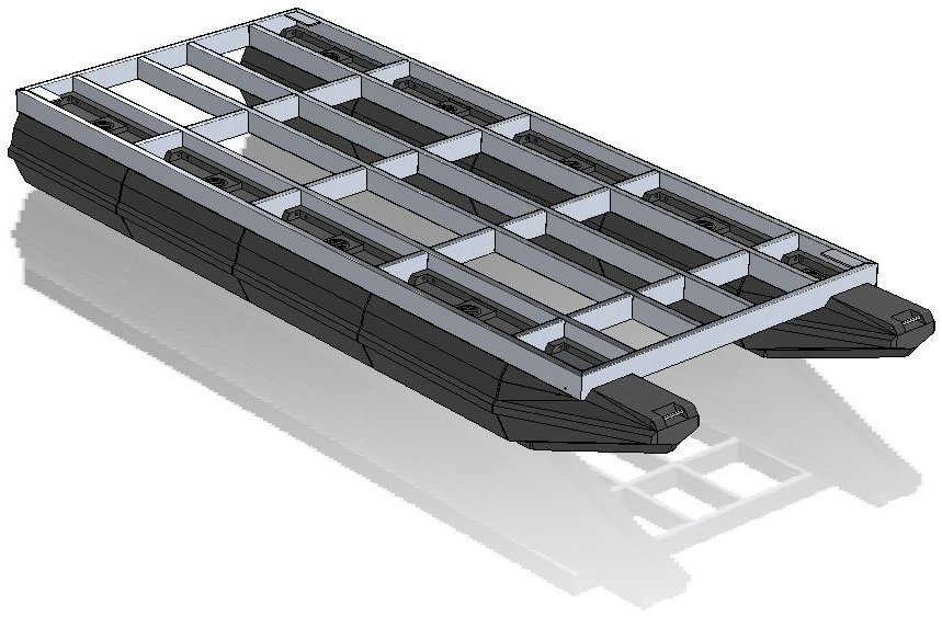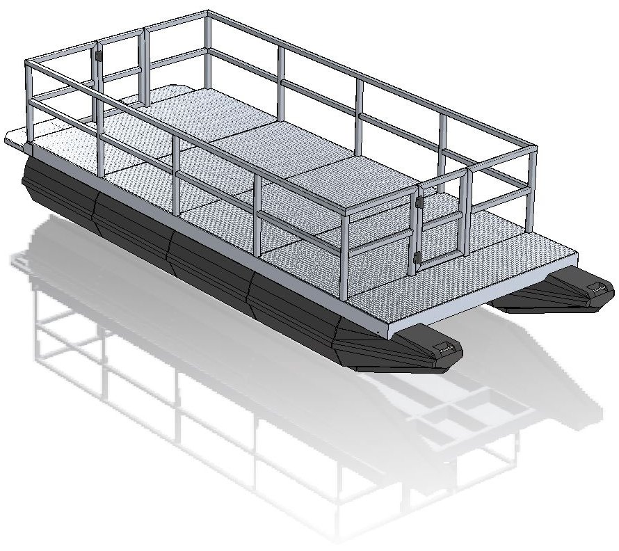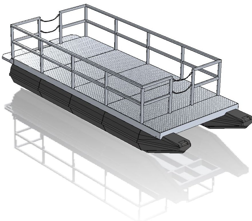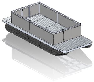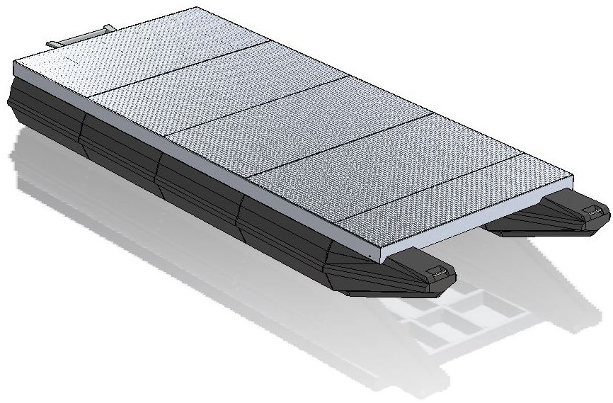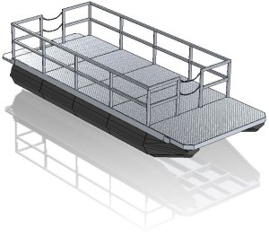 Pontoon modules are moulded in one piece from tough, high stress crack-resistant, thermoplastic polyethylene resin. In built mounting lugs allow direct connection of the modules to the frame work system.