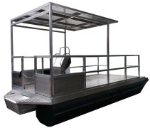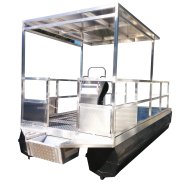 This pontoon boat is good for 1-6 people and is able to take upto 10 if a centre row of pontoons is added.