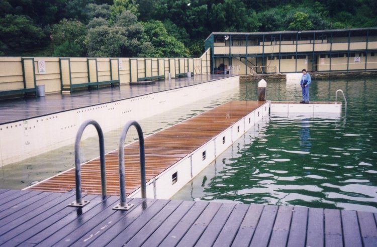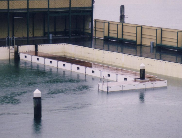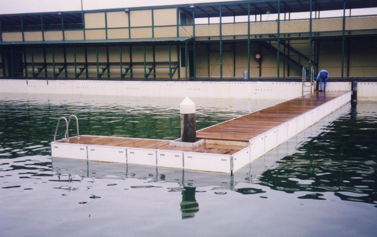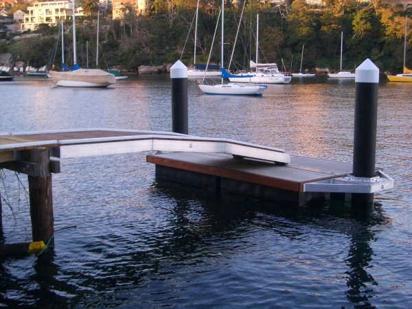 These are pictures of pontoons in Sydney Harbour Sydney Australia. All with Marine Dock Systems floats under them. Some recent, some built in 1980 and still going strong. There is a mix of timber framed pontoons decked with hardwood. Aluminium framed pontoons deck with hardwood timber. Aluminium frames with concrete decking. A lot of these photos also have our aluminium ramps / gangways on them. Some of these pontoons were built by someone else on our Marine Dock Systems floatation modules. Please veiw the photo's to see just what is possible with our universal pontoon system.